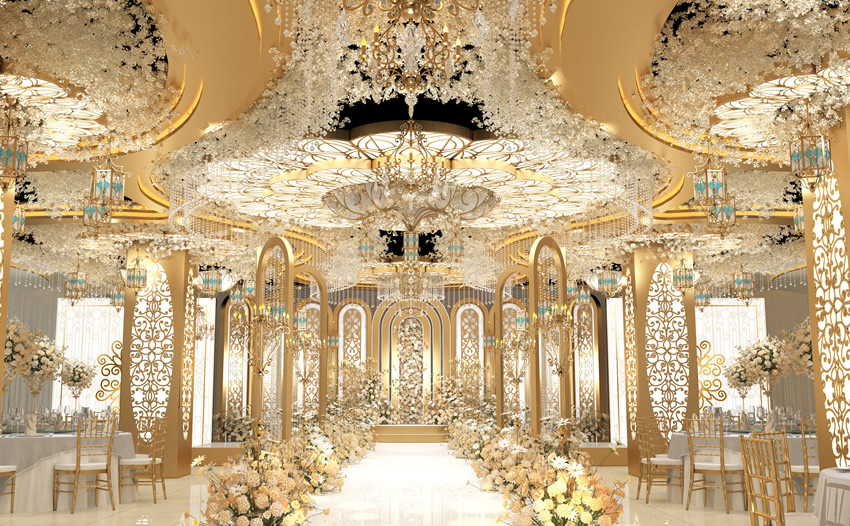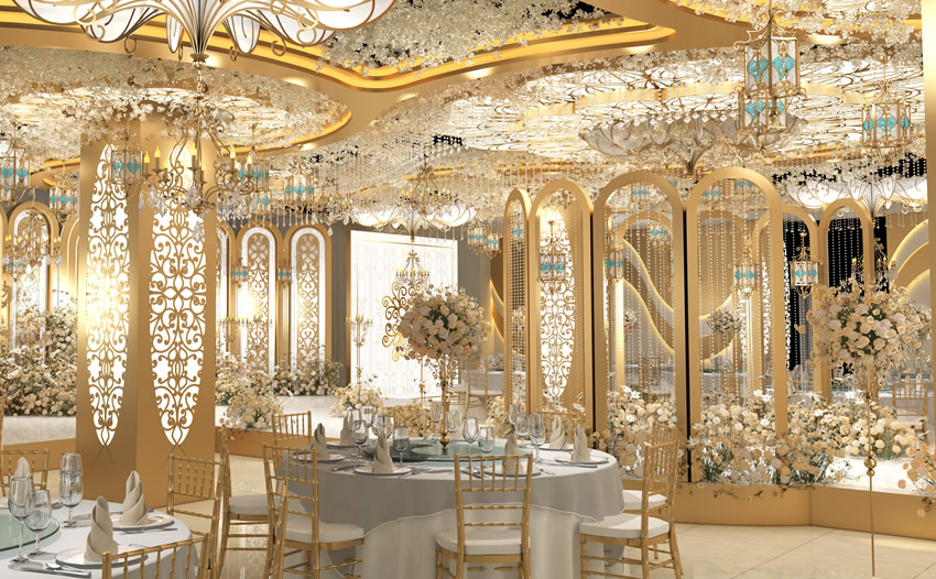 空间布局:考虑婚礼堂的用途,设定空间布局。婚礼堂通常包括仪式区,接待区,餐饮区等。要确保所有区域都足够宽敞,且能够顺利地进行各项活动。